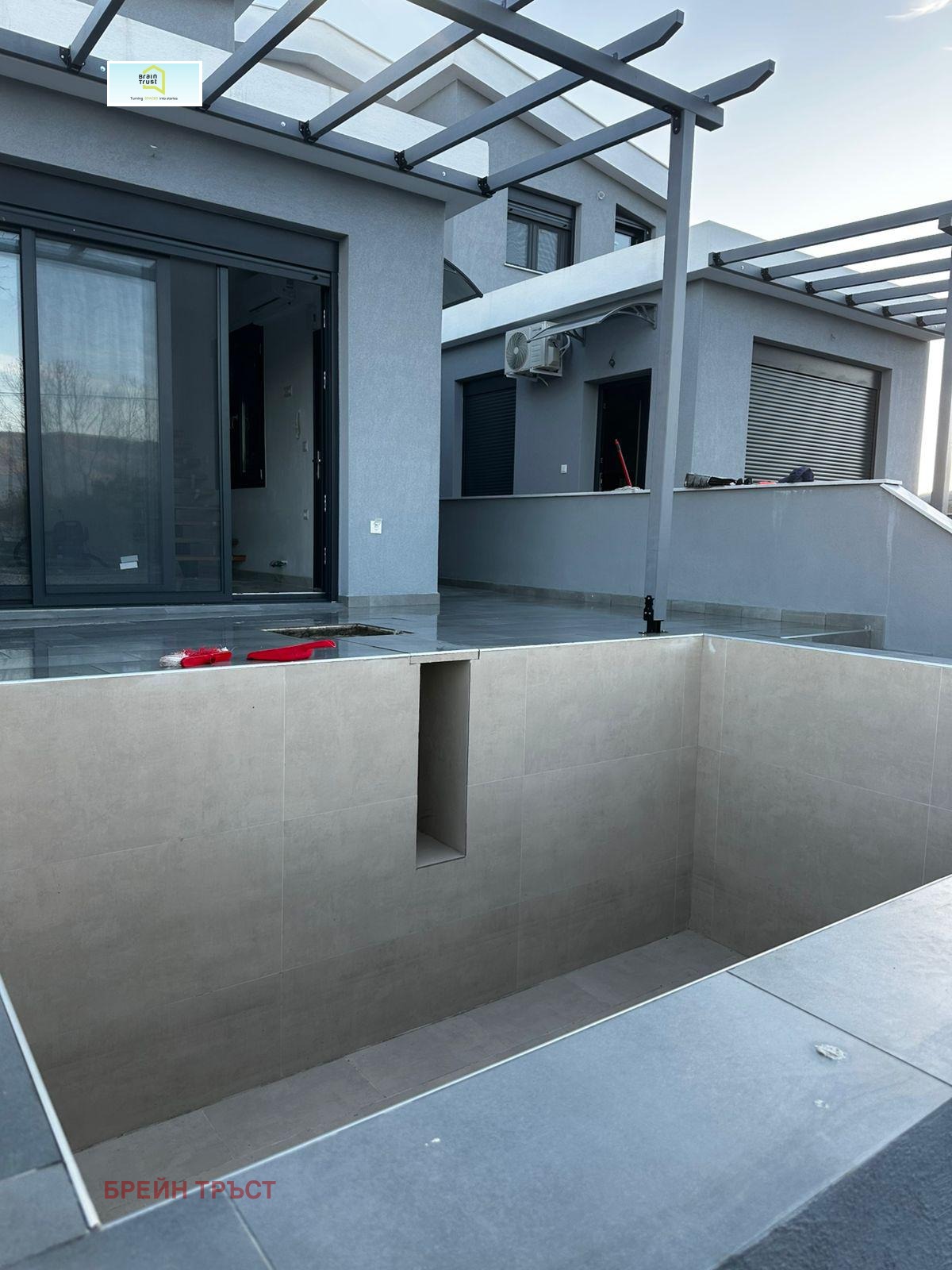 Към имота има двор, басейн и паркинг.