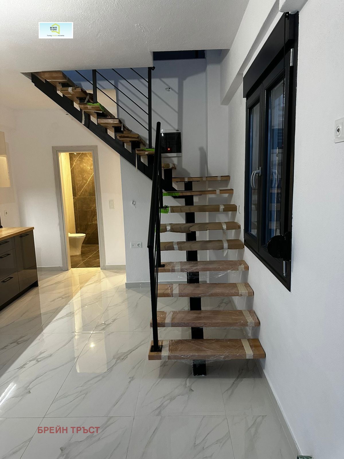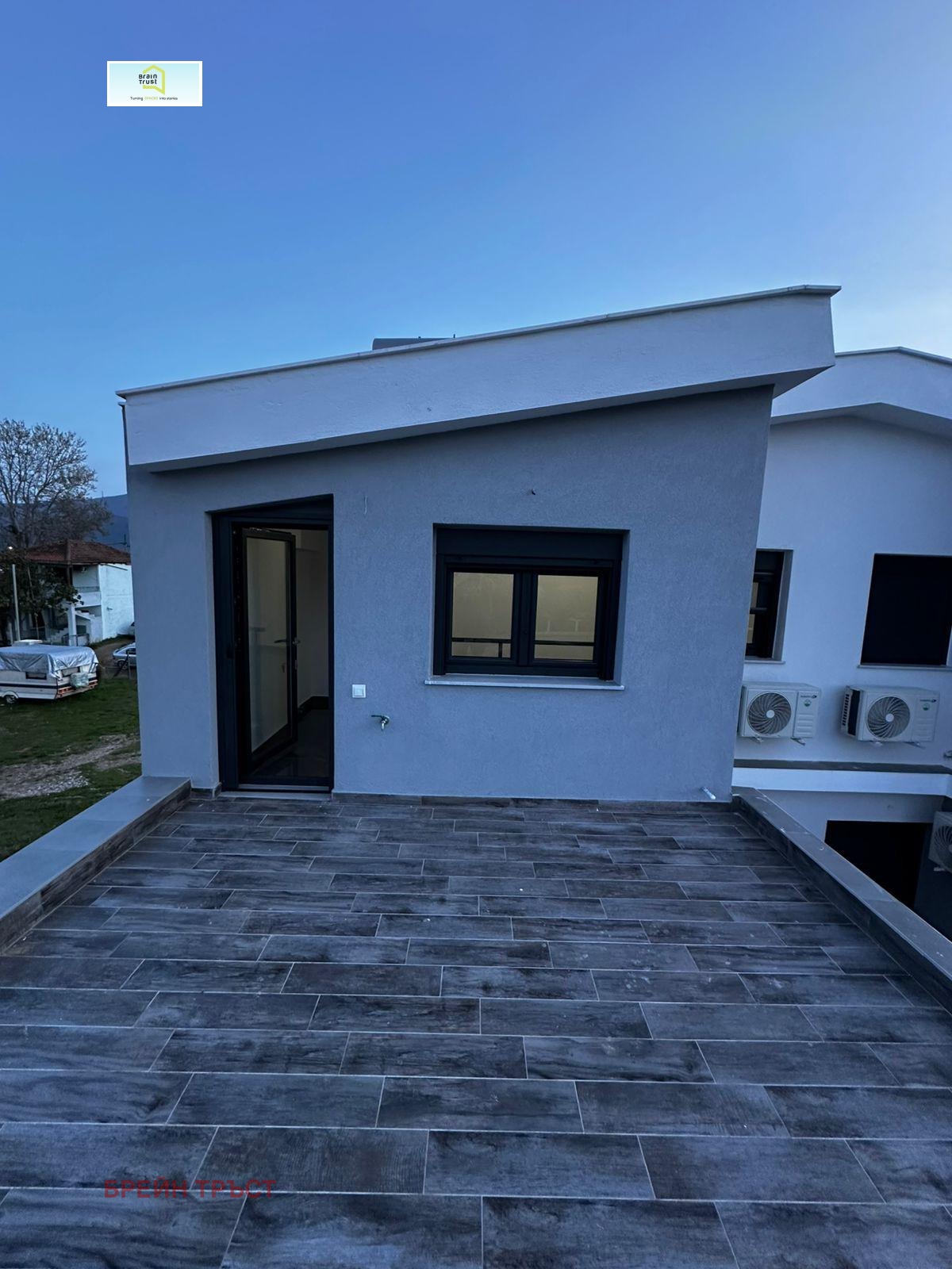 Brain Trust предлага къща близнак на два етажа в Неа Врасна на 200 метра от плажа.