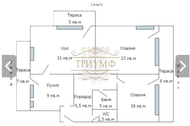 Площ: 103 кв.м. (реална ЧЖП по документ 85 кв.м., без терасите)