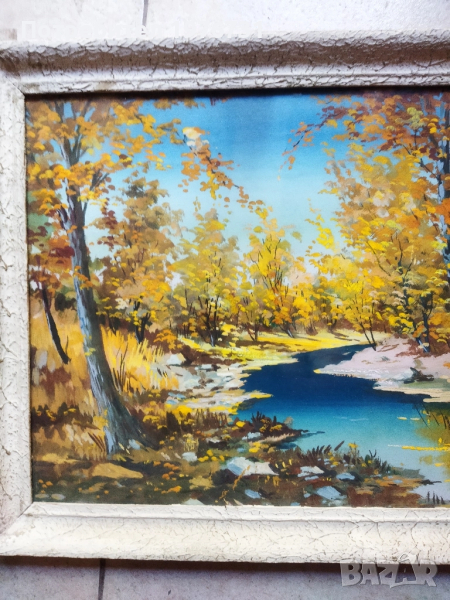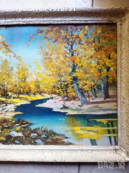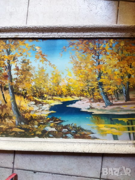 Майсторска Българска картина Есен рисувана с темперни бои върху картон .