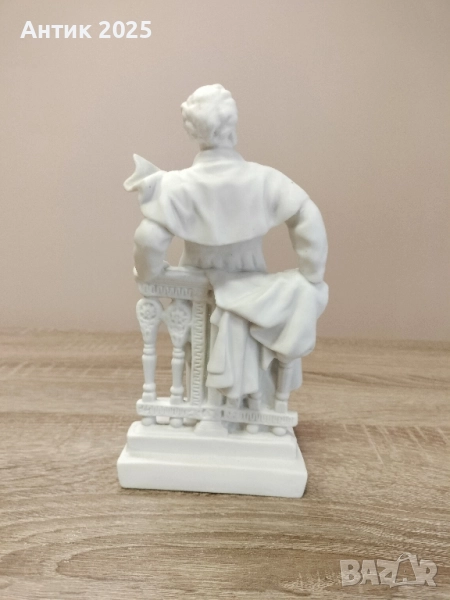 порцеланова статуетка, изработена в Ленинградския порцеланов завод (ЛФЗ). Авторска работа, посветена на великия руски поет Александър Сергеевич Пушкин. Материал: бял бисвит порцелан. Фина изработка с внимание към детайлите: фигура в цял ръст, в класическа поза до колона. Отлично състояние, без пукнатини и отчупвания. Размер: височина около (посочете точната височина в см, например 20–25 см). Колекционерска рядкост, ценена сред любителите на съветския порцелан и почитателите на творчеството на Пушкин. Подходяща за колекция, интериор или като подарок.