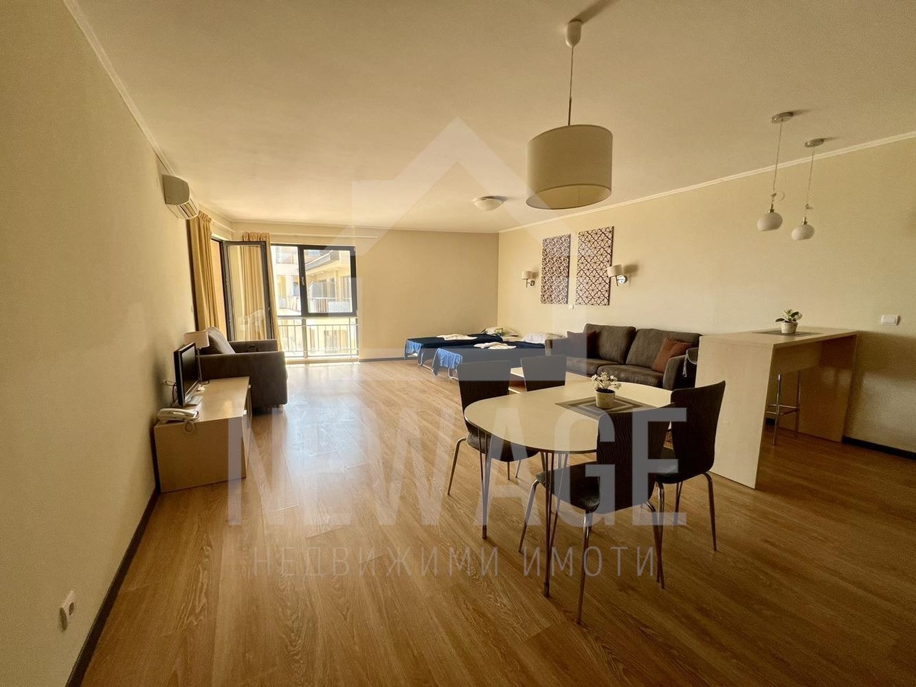Апартаментът се състои от просторна дневна с кухненски бокс, отделна спалня, баня с тоалетна и голяма тераса с фронтален изглед към морето. Продава се напълно обзаведен и оборудван с всичко необходимо за комфортно обитаване както за лично ползване, така и за отдаване под наем. Състоянието му позволява незабавно нанасяне, без нужда от допълнителни инвестиции.