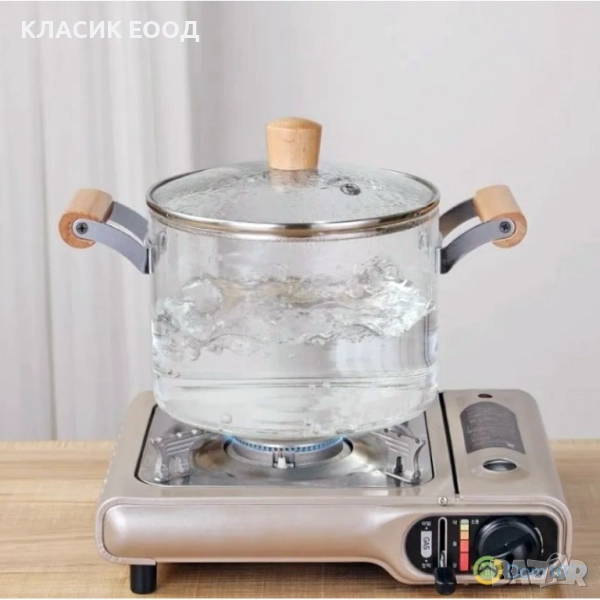 Материал огнеупорно стъкло, метал и дърво.