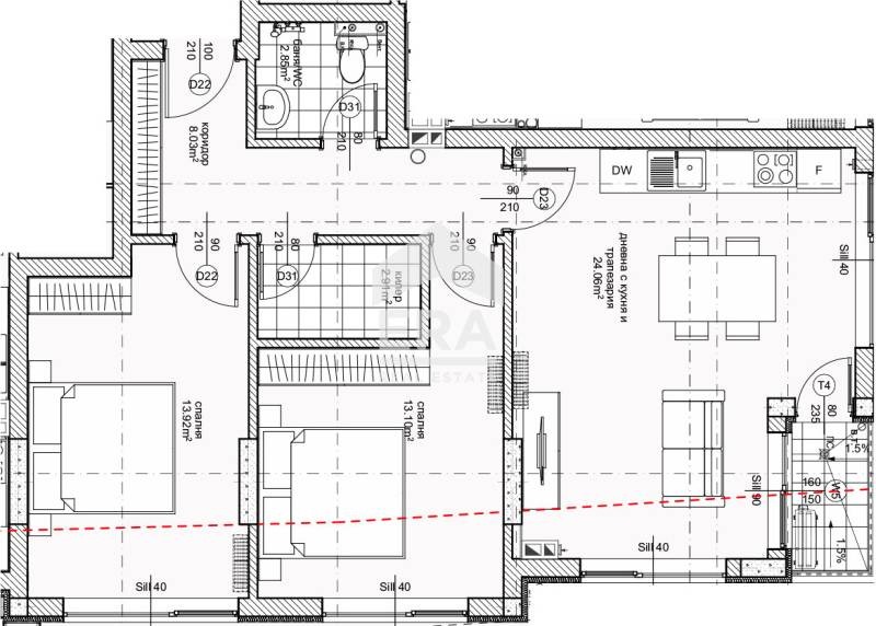 Само в ЕРА Лайф! Обявеният за продажба имот с площ - 77,19 кв.м. (застроена площ 88,85 кв.м.) , е разположен на десети етаж в новопостроена жилищна сграда на Етап Акт 14. Имотът е със следното разпределение: коридор - 8,03 кв.м, дневен тракт с открит кухненски бокс - 24,06 кв.м. с излаз на балкон, две спални - 13,10 и 13,92 кв.м., килер - 2,91 кв.м, комбиниран санитарен възел - 2,85 кв.м. Имотът е със статут на апартамент.
