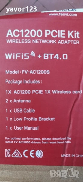 последният драйвер от сайта на Fenvi за пълна функционалност).