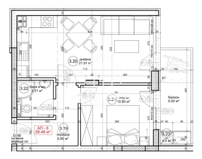 Площ: 71,28 кв.м (чиста площ + общи части)