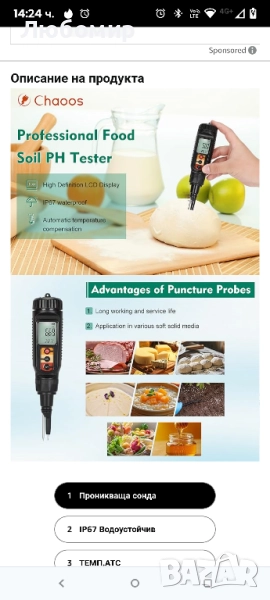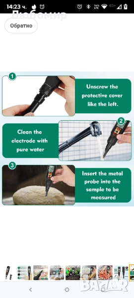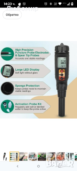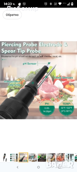 Цифров pH метър за храна, водоустойчив pH метър за квас. Оборудван с прободен електрод за откриване на pH стойността на меки почви, подходящ за месо, сирене, пивоварство и вода и др