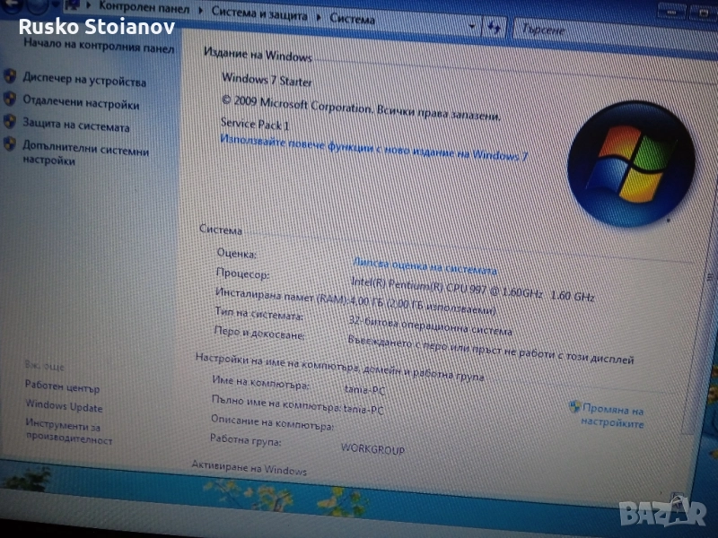 без забележки ,1.6 pentium,4gb ram,320 hd,windows 7,с зарядно....
