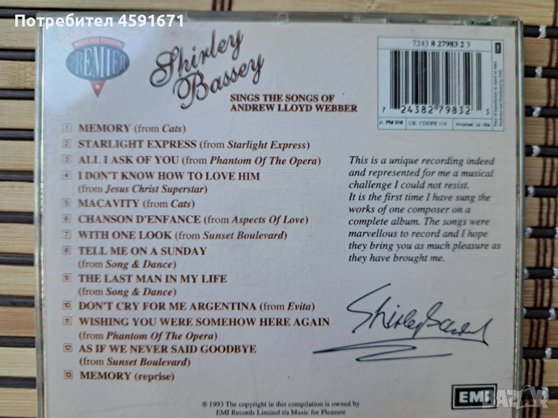 Shirley Bassey – Sings The Songs Of Andrew Lloyd Webber, снимка 1 - CD дискове - 51808450 Shirley Bassey – Sings The Songs Of Andrew Lloyd Webber, снимка 2 - CD дискове - 51808450 Shirley Bassey – Sings The Songs Of Andrew Lloyd Webber, снимка 3 - CD дискове - 51808450 1/3