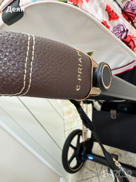 Продавам бебешка количка Cybex Platinum E Priam 4 Rose Gold Spring Blossom Light. Ползвана е малко и е в отлично състояние. Комплект с кош за новородено и столче за кола в същия десен. електрическо задвижване - асистент при бутане, изкачване и слизане. Чрез приложението може да люлее бебето в три различни режима. В комплект със зарядно. Количката е с документи за покупката, закупена от Рая Тойс.