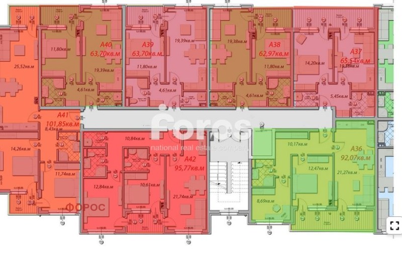 Холът е с площ то 21,27 кв.м, спалнита са с площ то 12,47 кв.м. и 8.69 кв.м, балкон 11,33 кв.м. и баня с площ - 3,54 кв.м.