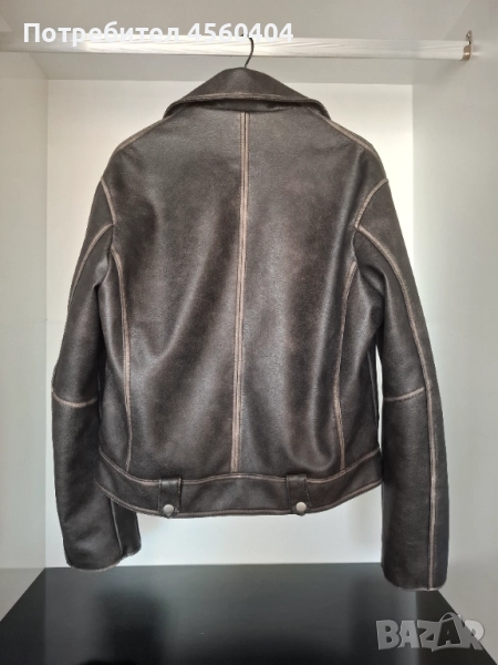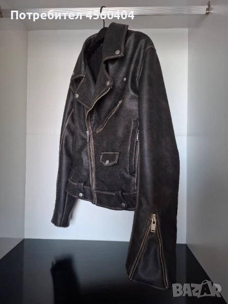 Мъжко кожено яке Biker от плътна еко кожа, модел на ZARA, размер S. Всяко яке е ръчно избелено, което го прави едно по рода си.