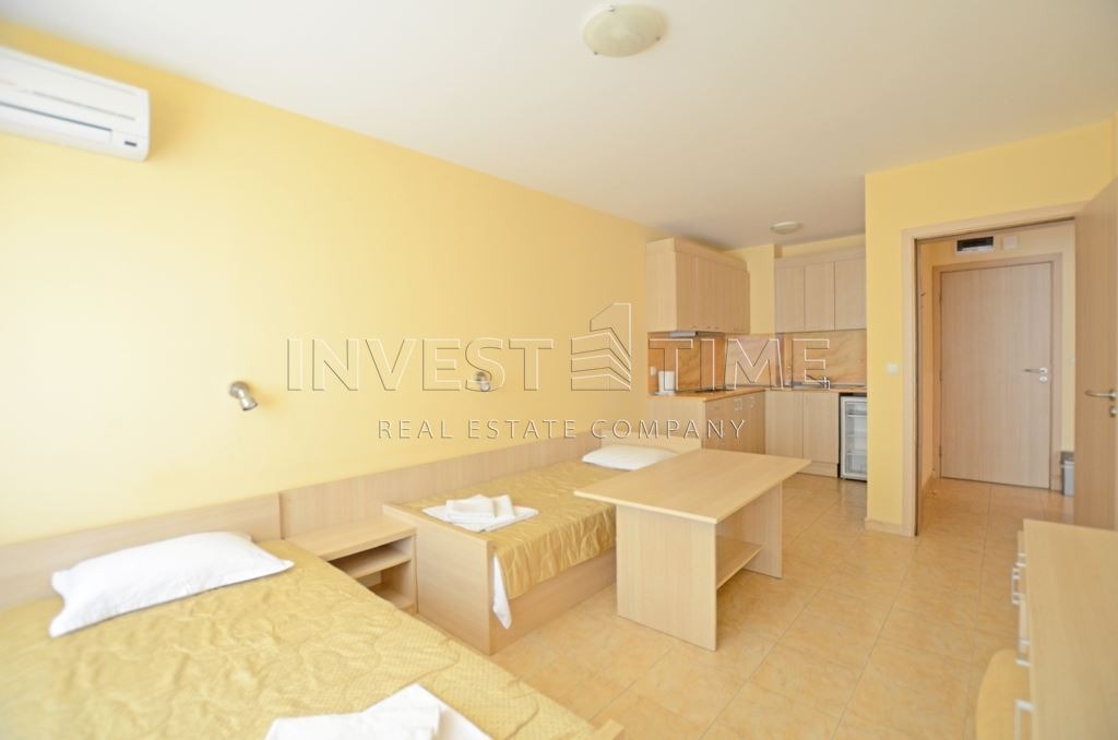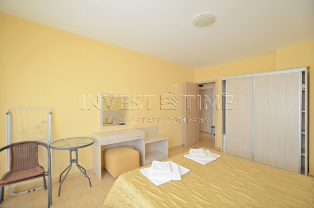 ЕКИПЪТ - Инвест Тайм предлага ексклузивно за продажба двустаен апартамент, разположен на втори етаж в тухлена сграда с АКТ 16 от 2009-та година. Жилището се състои от антре /4.03 м2/, дневен тракт с кухненска част /19.83 м2/, спалня /15.98 м2/, като и двете помещения разполагат с излаз към балкон /8.15 м2/ и санитарен възел /3.09 м2/. Апартаментът се продава с наличното обзавеждане и оборудване. Свободно паркиране в района. Сградата се намира в непосредствена близост до търговската улица и най-големия супермаркет. Подходящ е за отдаване на нощувки, както и за целогодишно обитаване. Без такса за поддръжка!