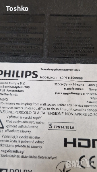 Стойка за ТВ PHILIPS 40PFH4009/88 → Обява 51810813