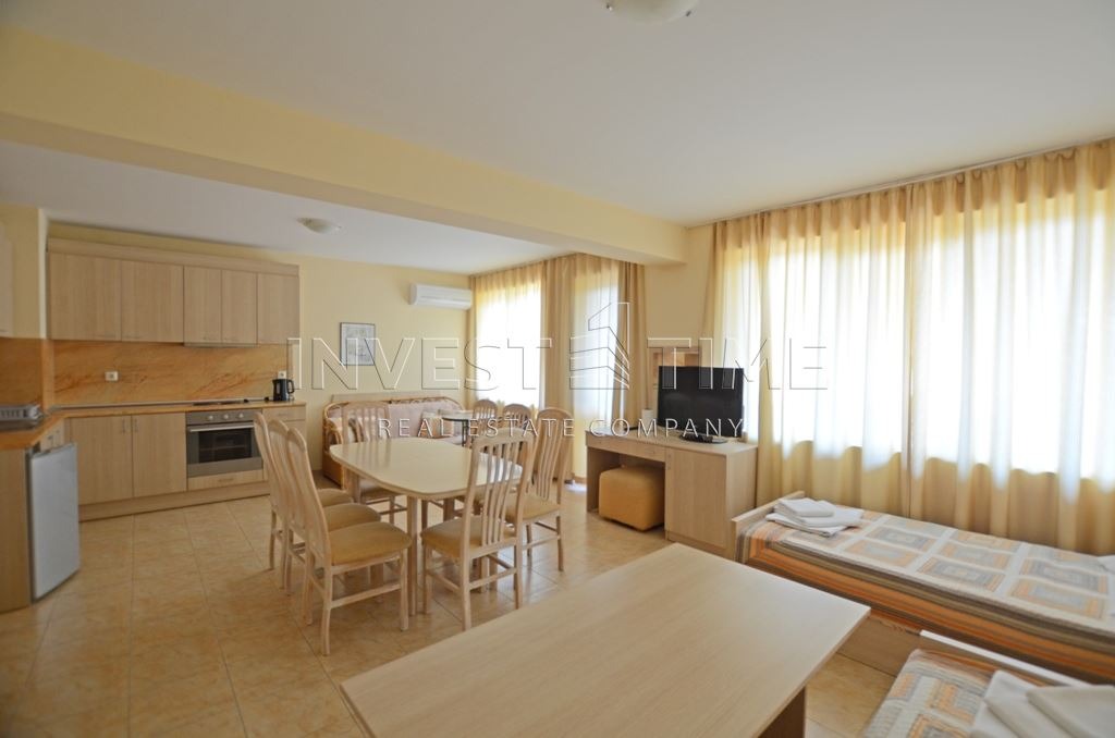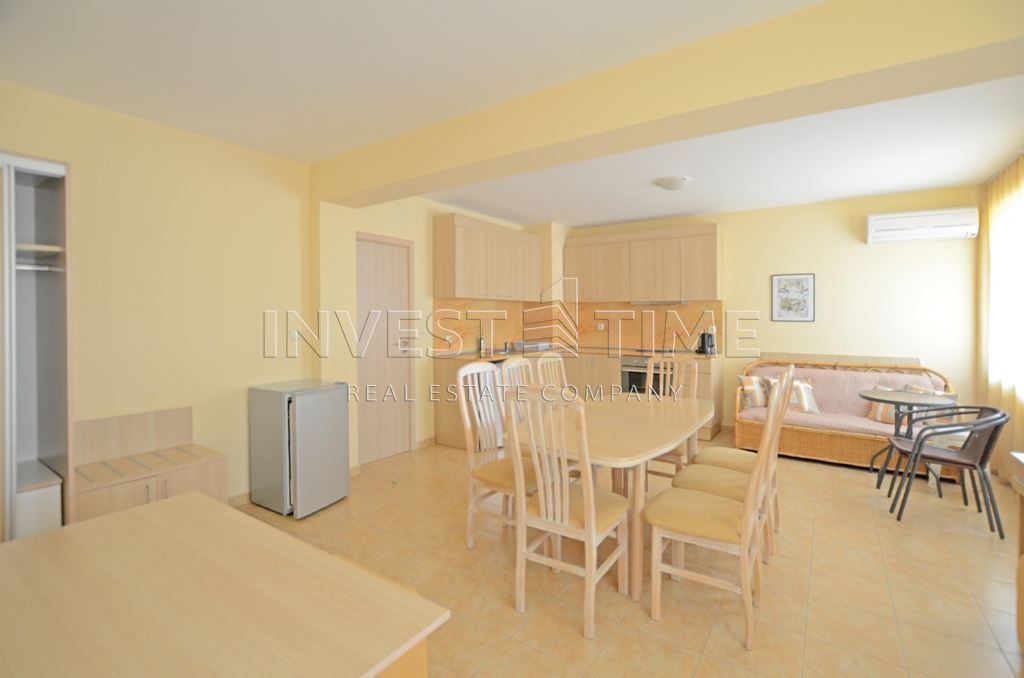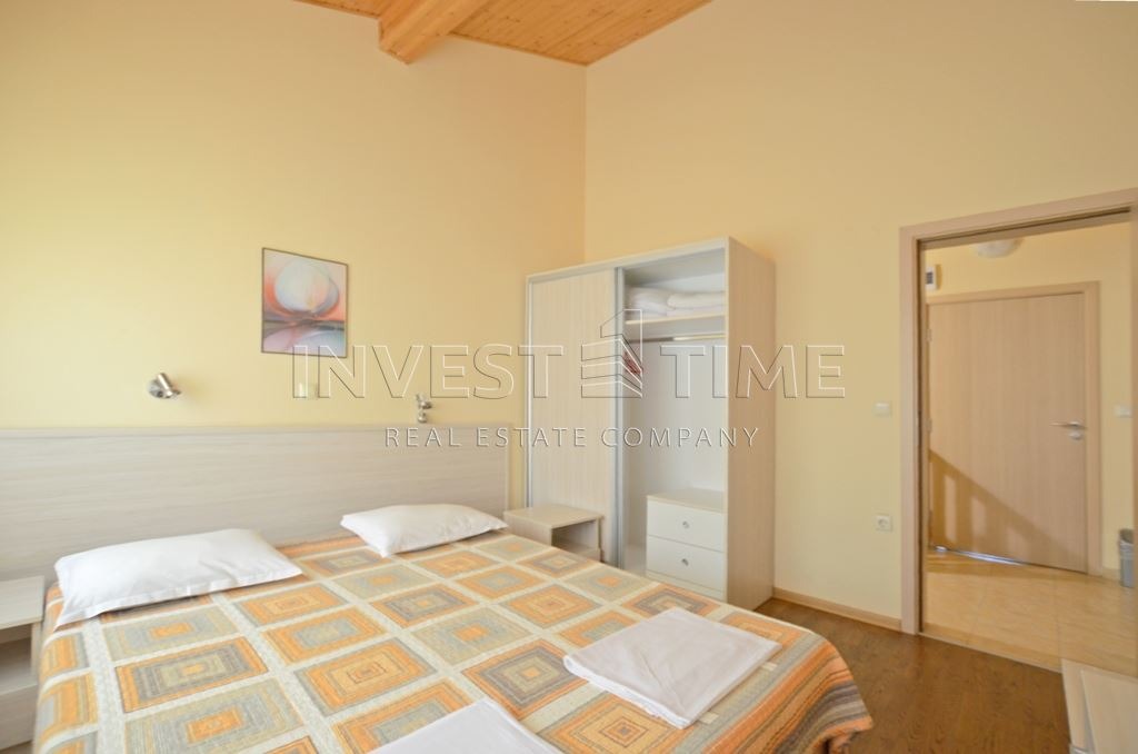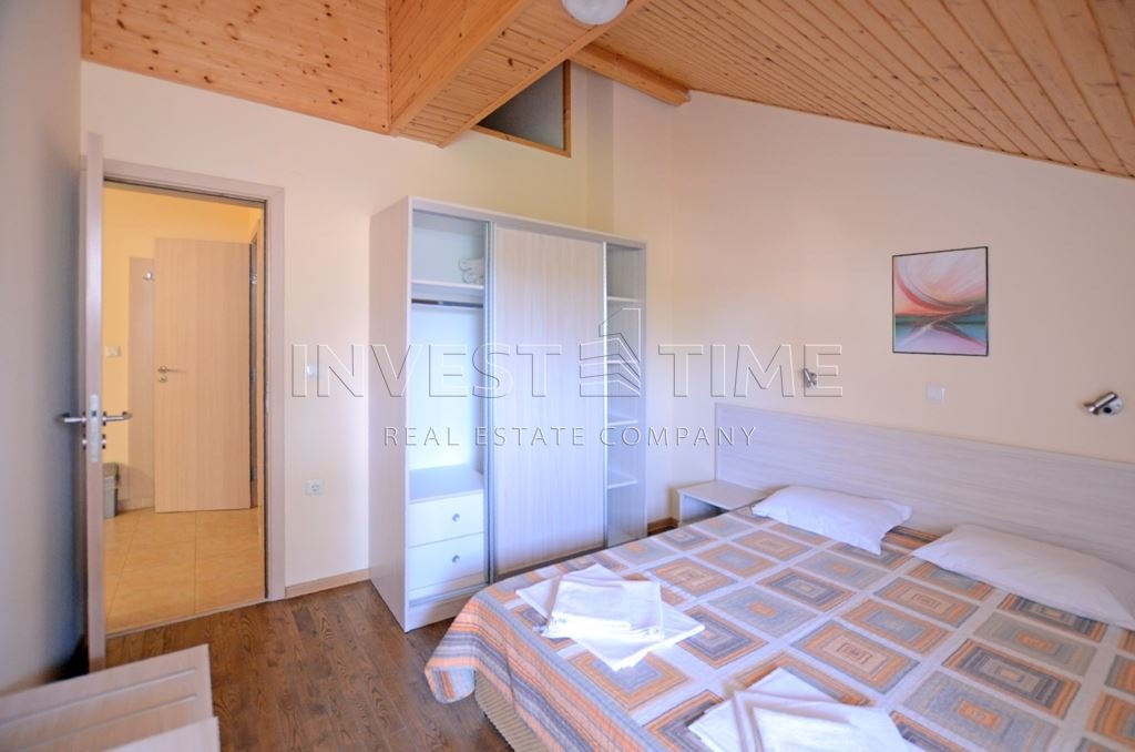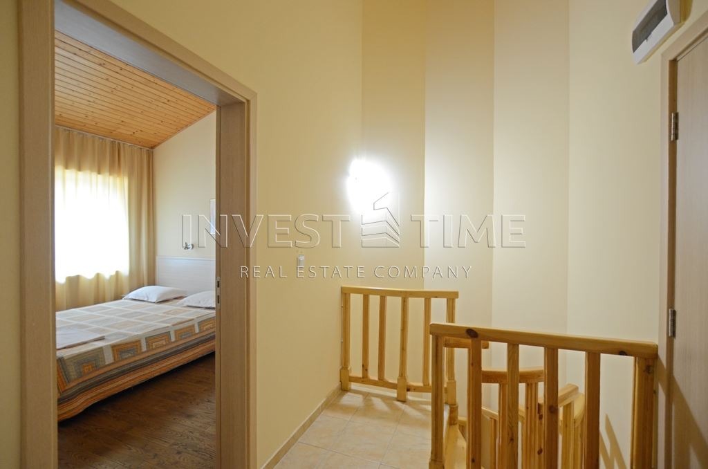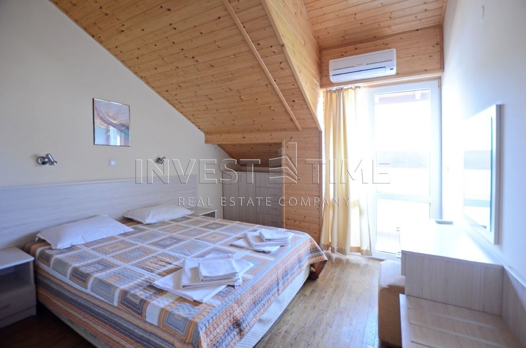 ЕКИПЪТ - Инвест Тайм предлага ексклузивно за продажба тристаен апартамент - тип мезонет, разположен на трети и четвърти етаж в тухлена сграда с АКТ 16 от 2009-та година. Жилището се състои от антре /7.81 м2/, дневен тракт с кухненска част /32.10 м2/ с излаз към голям балкон /8.15 м2/, санитарен възел /3.09 м2/, две спални /13.97 и 11.96 м2/ с излаз към втори балкон /5.60 м2/, както и втори санитарен възел /3.09 м2/. Апартаментът се продава с наличното обзавеждане и оборудване. Свободно паркиране в района. Сградата се намира в непосредствена близост до търговската улица и най-големия супермаркет. Подходящ е за отдаване на нощувки, както и за целогодишно обитаване. Без такса за поддръжка!