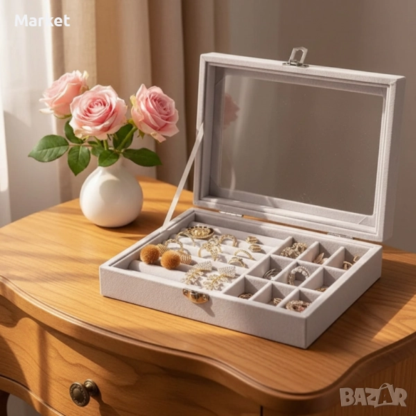 Разпределение: 24 отделения за различни видове бижута и аксесоари;