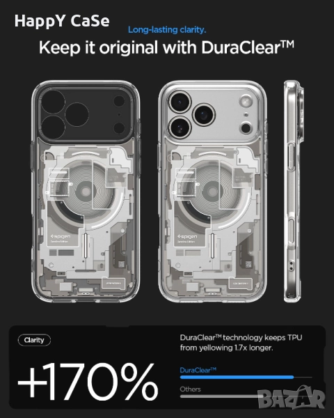 5. DuraClear Technology - технология която предпазва TPU силикона от пожълтяване до 1.7 пъти по-бавно спрямо масовите силиконови кейсове