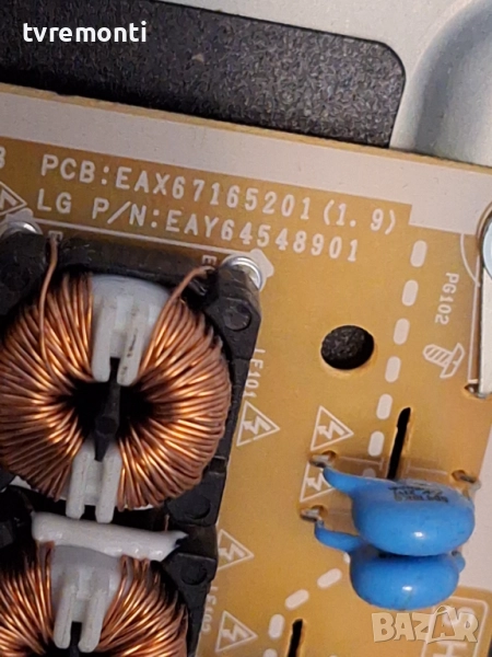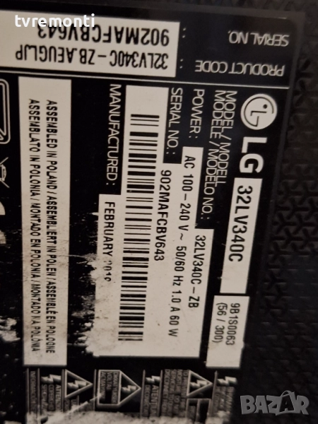 POWER BOARD ,EAX67165201(1.9),EAY64548901, за 32-инчов телевизор LG Модел 32LV340C-ZB , с дисплей HC320DUE-ABFX1. Платката е използвана, но гарантирано работеща, демонтирана от телевизор със счупен дисплей. Тествана е от нашия техник.