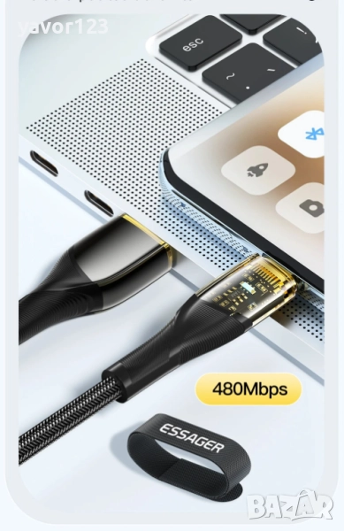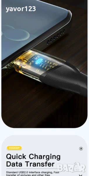 Кабела е изключително качествен и здрав и с позлатени букси! А буксите не се разпадат, както при повечето кабели! Има също светодиодна индикация, когато работи. Става за зареждане до 100 вата или 7 ампера. От USB A към USB C.