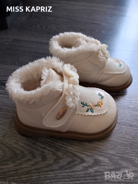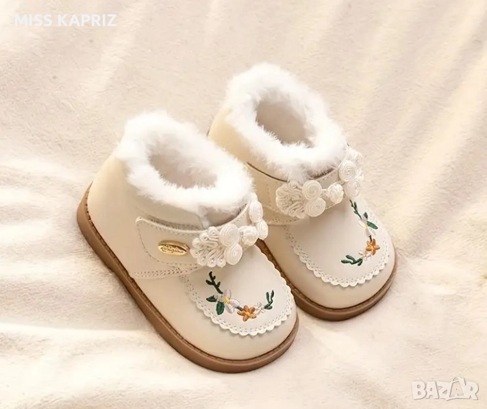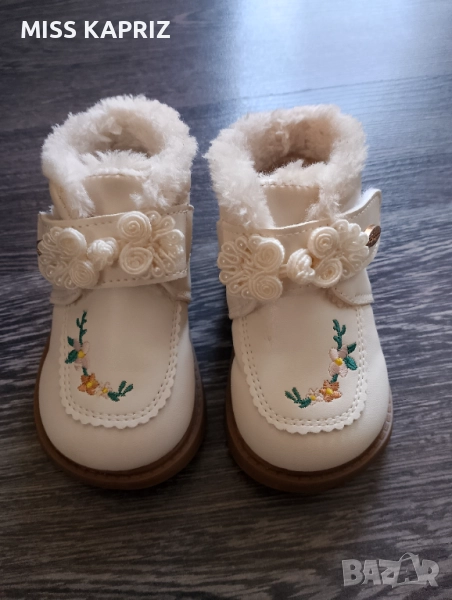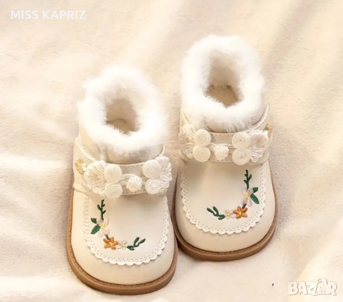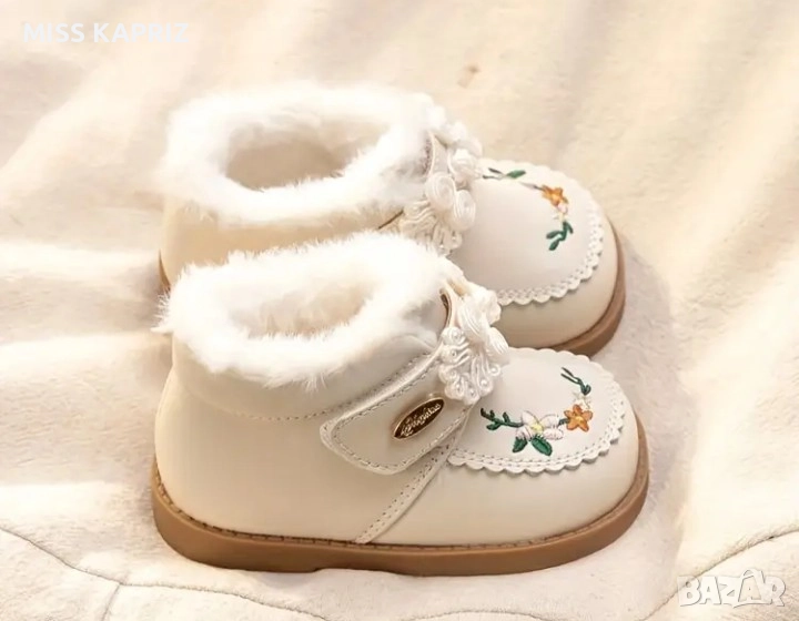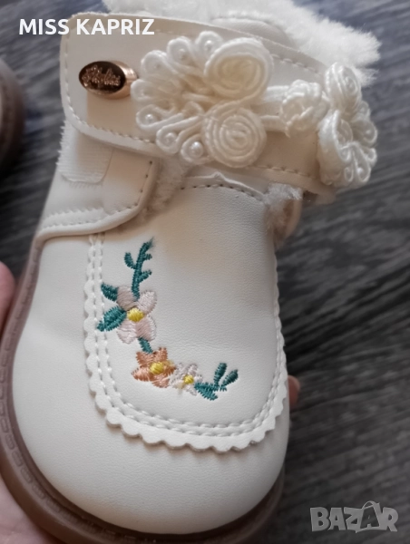 Зимни боти с велкро закопчаване , красива бродерия и цветя.Отговарят на 20 номер, дължина на стелката 12 см.Нямат забележки!!