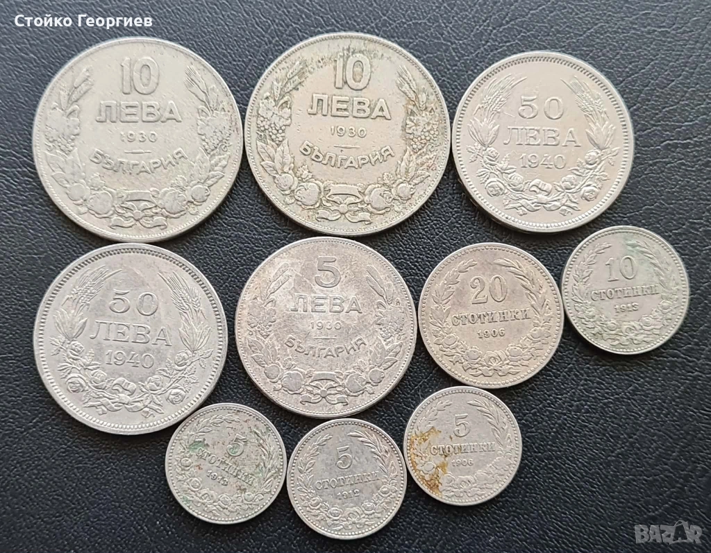 Лот от 10 монети - 2 броя 50 лева 1940 г., 2 броя 10 лева 1930 г-,
