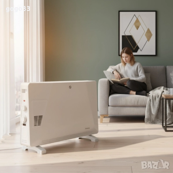 Конвекторен отоплител Rosberg – 2500W, 3 степени, с вентилатор, защита от прегряване (бял или черен) Цена: 102 лева(52.1526 евро) Марка: Rosberg; Модел: R51974ET; Цветове: Бял (ETW) / Черен (ETB); Мощност: 2500W; Степени на мощност: 3 (1000W / 1500W / 2500W); Функции: Вграден вентилатор, управление чрез термостат; Защита: Против прегряване, автоматично изключване; Преносимост: Вградени дръжки; Монтаж: Свободностоящ (подов); Захранване: 220–240V, 50Hz; Мощностен диапазон: 2100–2500W.