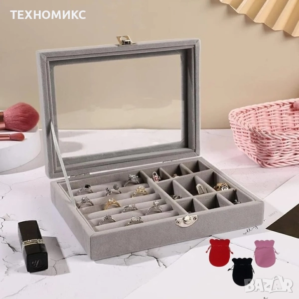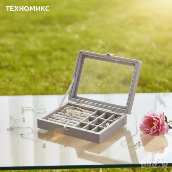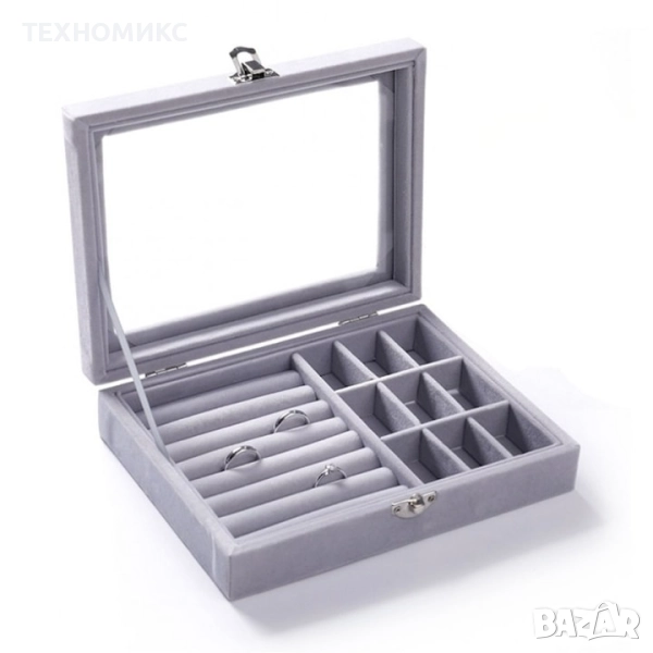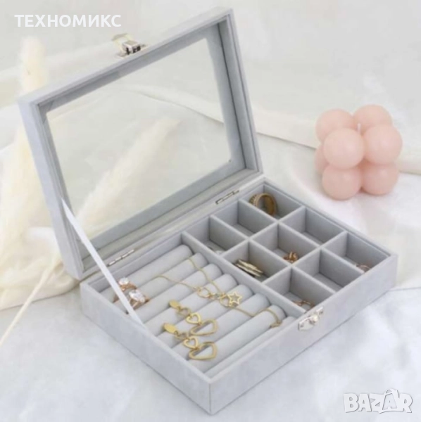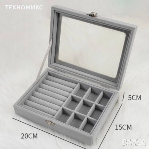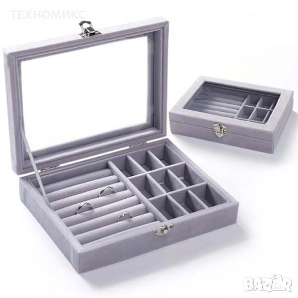 Кутията е разделена на две отделни секции, което ви позволява да съхранявате любимите си обеци, пръстени, гривни и други бижута.