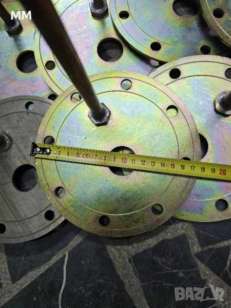 Налични 12 броя.Цялото количество - 200 лв.Поцинкован кръгъл фланец с 1 медна тръба за термосонда, съвместим с различни марки битови бойлери.Фланец за бойлер - φ180mm, Размери: Диаметър на фланеца: ∅180mm Диаметър на отворите: ∅11mm Диаметър на отворите за нагревател: ∅32mm Дължина тръба за термосонда: 285mm Диаметър отвора на тръбата за термосонда: ∅10mm