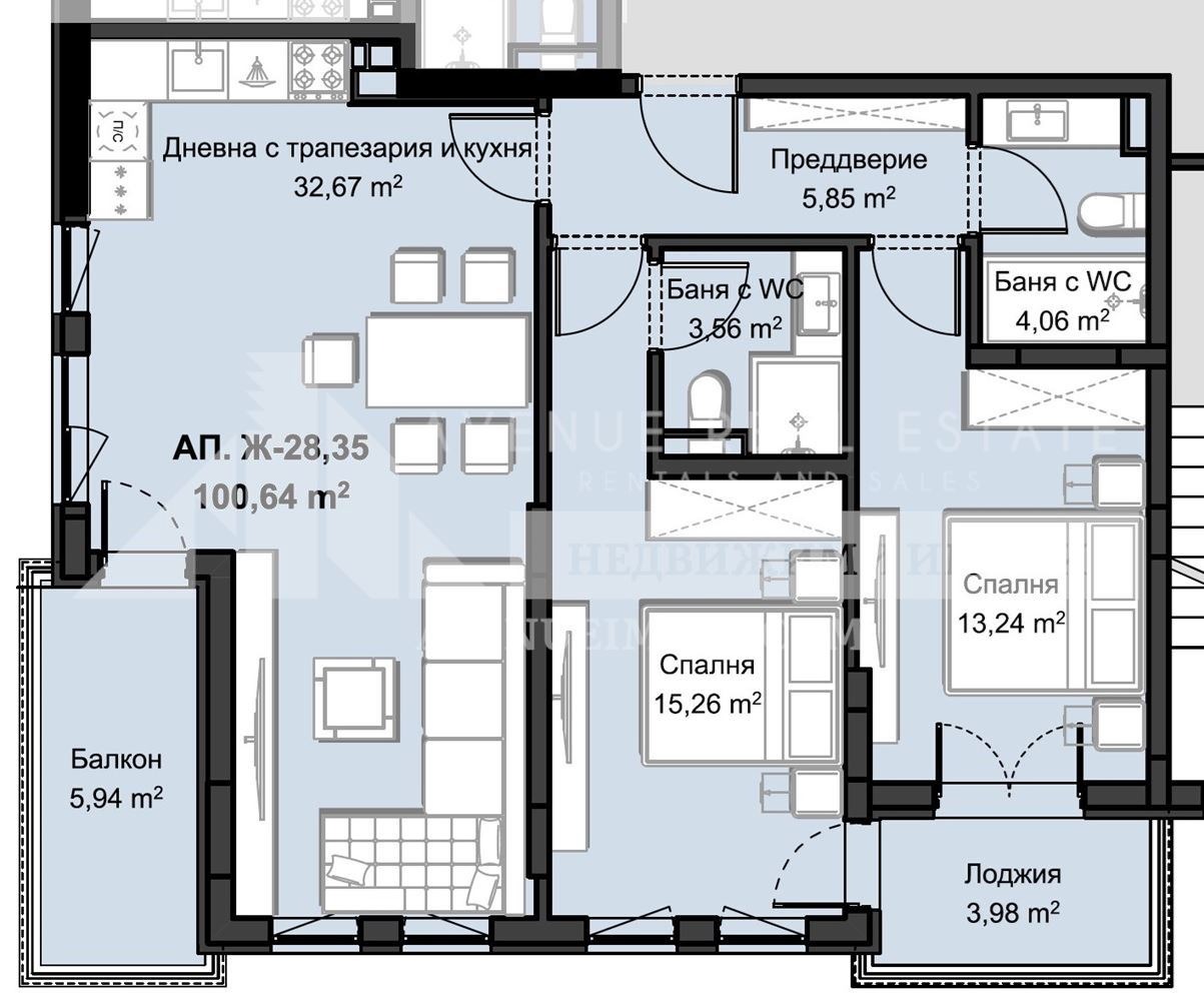 Агенция Авеню имоти има удоволствието да ви представи Тристаен апартамент в луксозен нов комплекс
