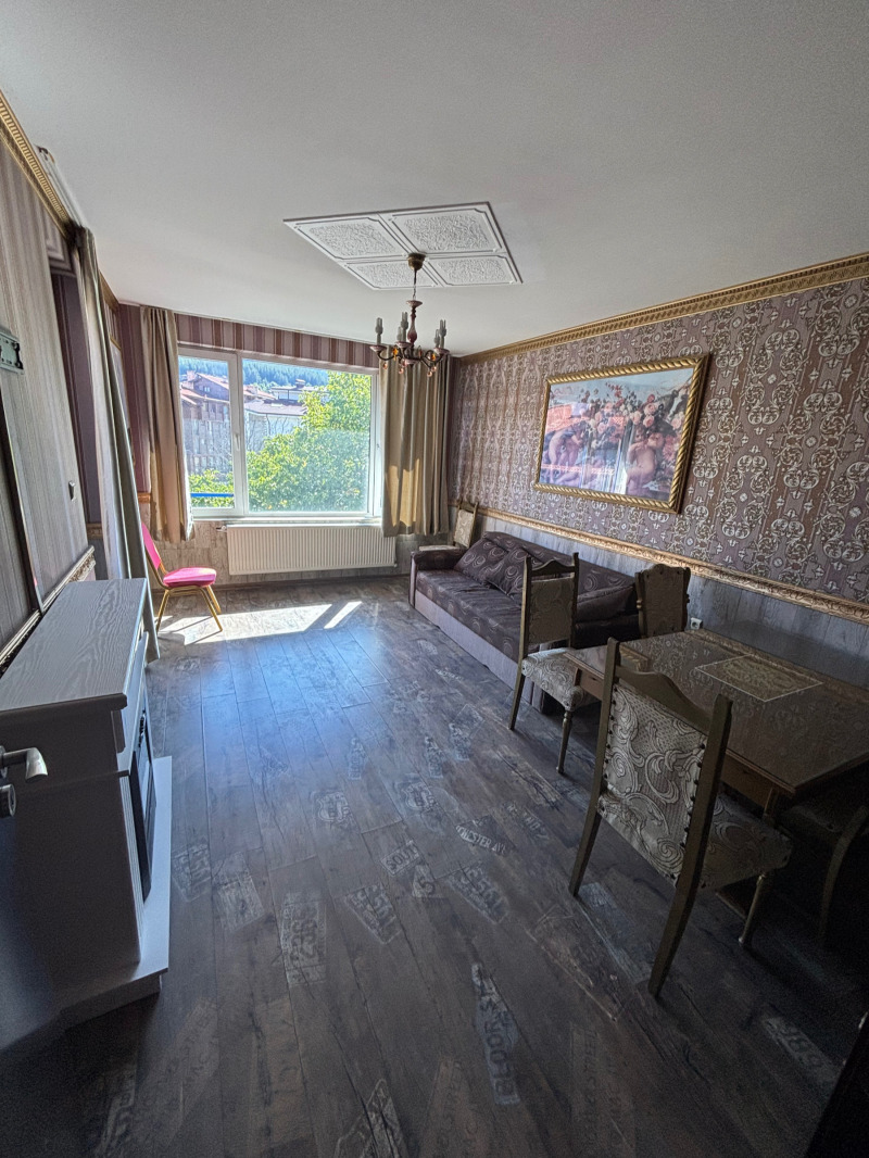 Представяме Ви уникален тристаен просторен апартамент, намиращ се в добре поддържана жилищна сграда с ниска такса поддръжка само на 5 минути от лифта и 200 метра от пистите. Апартаментът е изключително топъл заради вътрешното му разположение и изцяло южното му изложение, разкриващо страхотна гледка към планината. Апартаментът има нужда от минимално дообзавеждане, с което може да съдействаме. Отделни партиди за ток и вода. Ако търсите апартамент за инвестиция, почивка или живеене, то това е Вашият апартамент. За оглед или повече информация, не се колебайте да се свържете с нас.