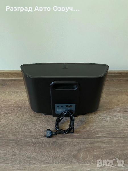 Sonos, модела е Play 5 първа генерация, което е най високия модел на марката, освен този модел има и по малкия му брат Play 3 и освен тях и най малкия им брат Play 1. Който знае марката или е имал някога нещо на тази марка знае за какво става дума. Много високо качество на звука! Кристална чистота и яснота на звука, много ясни високи и среди, много качествен и мощен бас, тази малката тонколона такъв бас има че все едно свири някое 10" инчов субуфер, отивам в другата стая и чак от там се чува мн сериозно баса как кърти. С една дума много добре е изчислен за размера си. Тонколоната работи с приложението Sonos, където има много настройки за нея и за звука и. Свързвате го с интернет с Lan кабел и го управлявате когато и както пожелаете даже ако сте извън къщата.