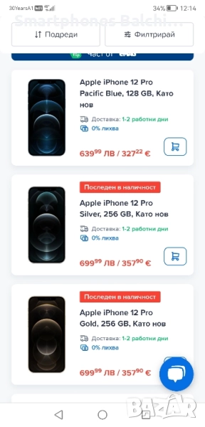 Smartphones Balchik Продава в отлично технически и визуално състояние Iphone 12 Pro Sierra Blue -256Gb. Отключен към всички Оператори. Face ID работи, и е с чисто нова батерия на 100% живот. Всичко работи отлично. Готов за ползване.За повече информация, заповядайте в магазина на ул. "Черно Море "до банка ДСК. Имаме и други модели- Facebook-Smartphones Balchik