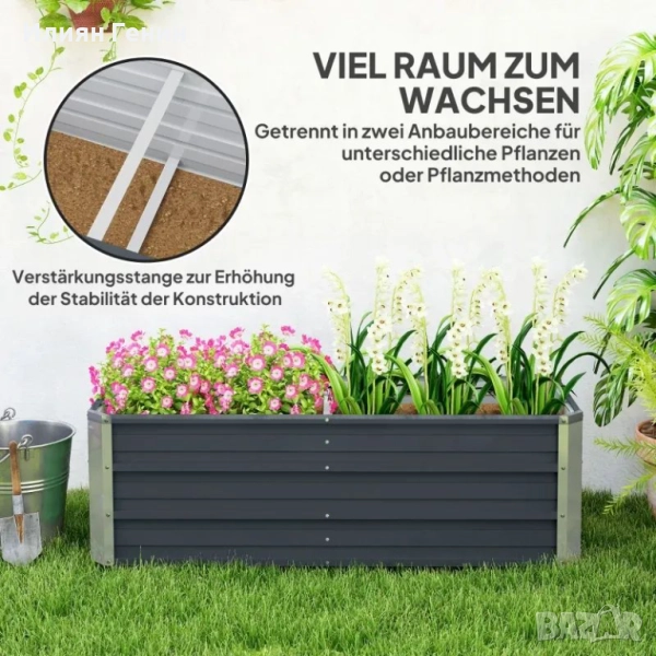 Голяма саксия: Тази повдигната градинска леха предлага достатъчно място за отглеждане на растения. Можете да отглеждате разнообразие от любимите си растения, зеленчуци, билки и цветя.