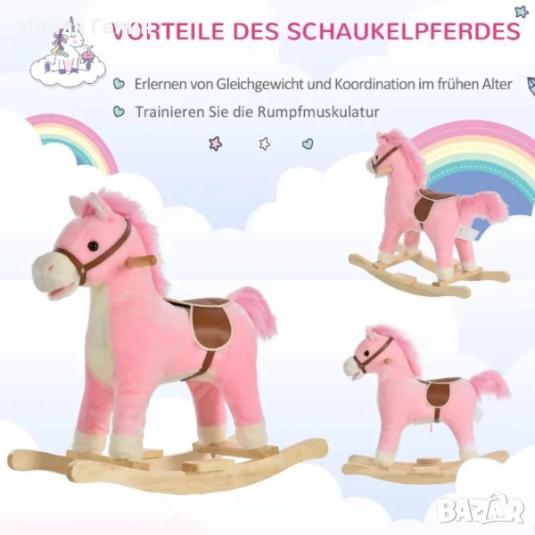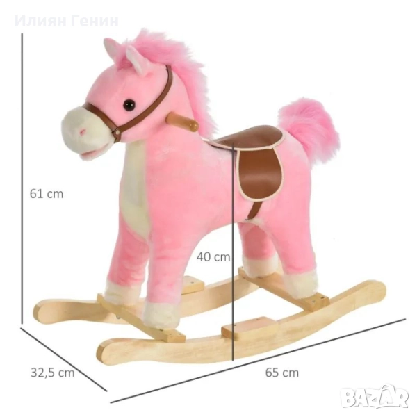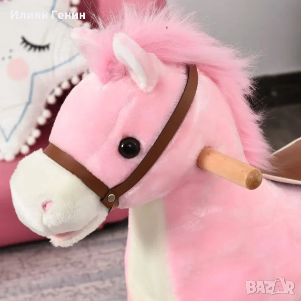 HOMCOM Детско люлеещо се конче с животински звуци, дръжки за играчки, за 36-72 месеца, плюшено, розово, 65 x 32,5 x 61 см - 100.00лв.
