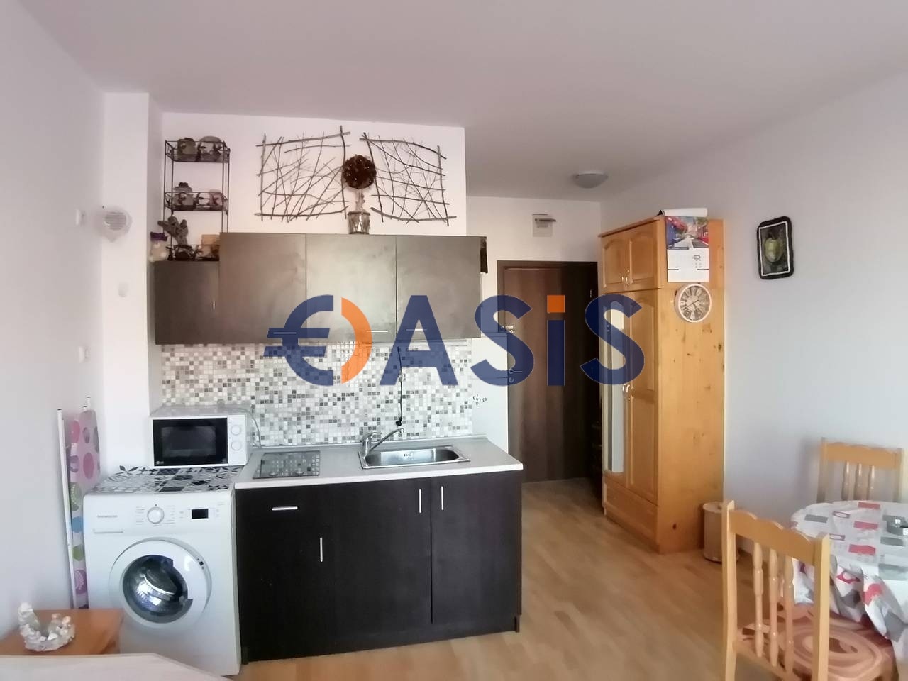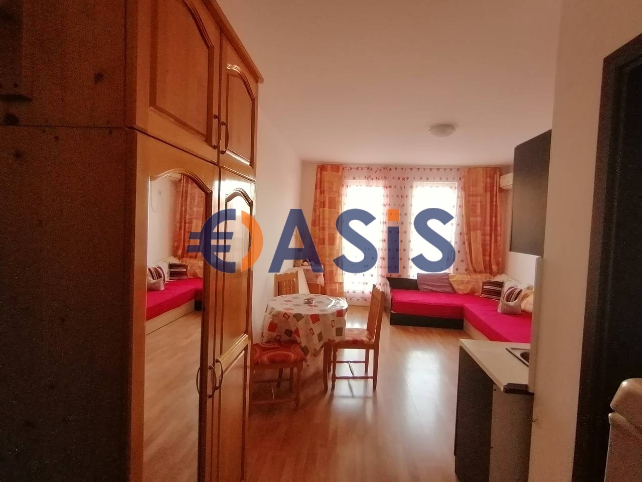 Студиото се състои от дневна с кухненски бокс, кът за сядане,баня .Студио без тераса . Продава се с мебели и уреди, готови за нанасяне . Нови ремонти, мебели и уреди в отлично състояние .Подходящ както за лятна почивка, така и за целогодишно живеене .