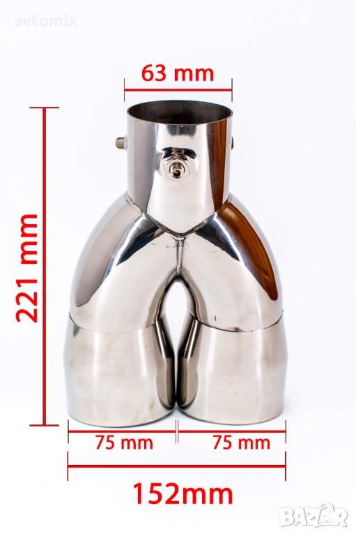 накрайник за ауспух. Изработен от устойчива неръждаема стомана, той е устойчив на високи температури, корозия и механични повреди.