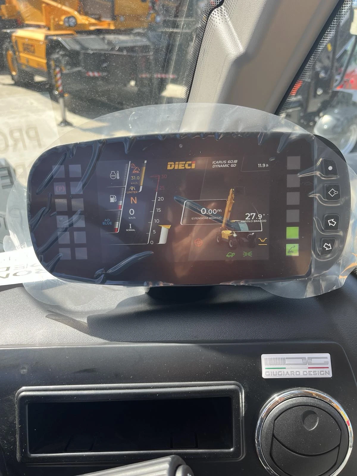 Телескопичен товарач DIECI Модел ICARUS 60. 18, НОВА МАШИНА - Максимален капацитет на повдигане: 6 000 кг - Капацитет на повдигане на максимална височина: 2 300 кг - Максимална височина на издигане с палетни вилици: 17, 8 м - Максимален хоризонтален досег напред (на стабилизатори): 13, 80 м - Капацитет на повдигане при максимален обхват напред (на стабилизатори): 900 кг - Турбо-дизелов двигател KUBOTA V3800, Common rail, с електронно управление, номинална мощност 85. 1 kW / 114 HP при 2600 об. /мин, Stage V; - Хидростатична трансмисия, с аксиално-бутална хидравлична помпа за хода на машината, със следене на натоварването (load sensing) и регулируем дебит - Задвижване / управление: 4х4х4 , макс. скорост на движение 30 км/ч - Луксозна кабина с климатик - Инчинг педал за прецизни движения с товар - Работно тегло 14 750 кг (с палетни вилици, без товар) Оборудван със: - Механичен бързосменник - Хидравлична линия по стрелата за прикачен инвентар - Палетни вилици 130 x 60 / L = 1 525 mm, капацитет 6. 5т