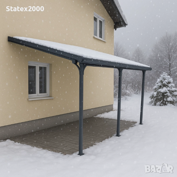 здръжлив и здрав алуминиев навес за автомобили/тераси. Характеристики: