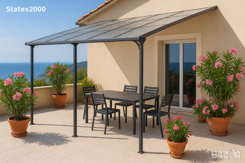 Издръжлив и здрав алуминиев навес за автомобили/тераси.
