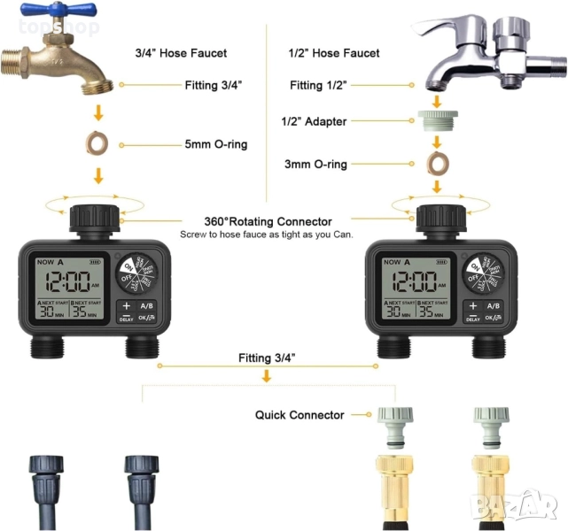 Нов LVSEWOA Цифров таймер за вода с 2 изхода, независимо програмиране на зона A/B, регулируем спринклер, лесен монтаж (HCT-M06-UN)