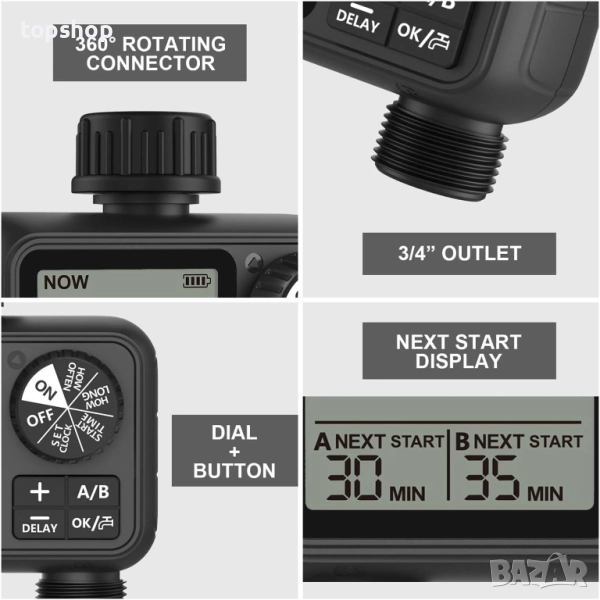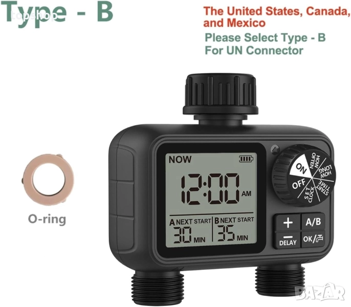 Нов LVSEWOA Цифров таймер за вода с 2 изхода, независимо програмиране на зона A/B, регулируем ...