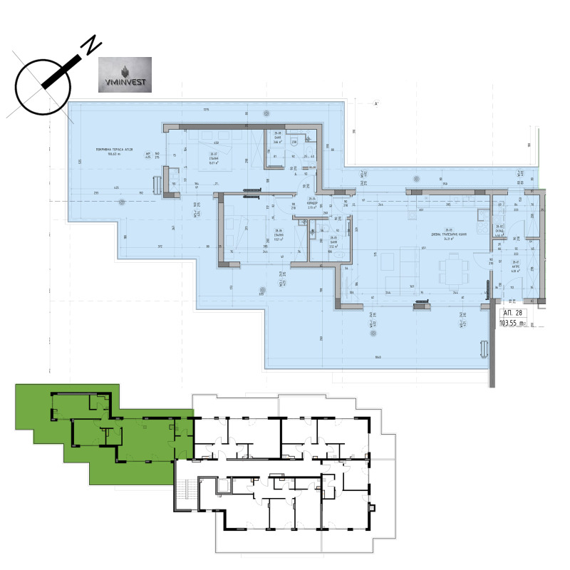 Апартаментът /Ап.28/ е с площ от 125,21 кв.м. и е на четвърти етаж.