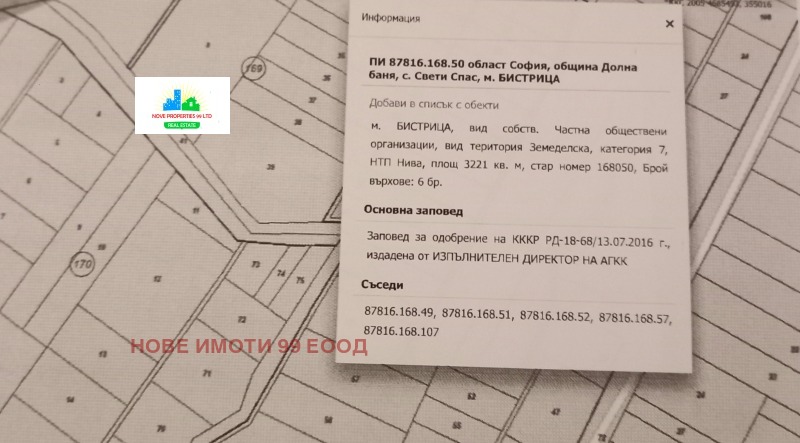 Продава ПАРЦЕЛ, гр. Долна баня, област София област → Обява 51817293