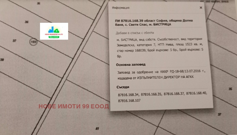 област София с.'Свети Спас', местност.'Бистрица'.