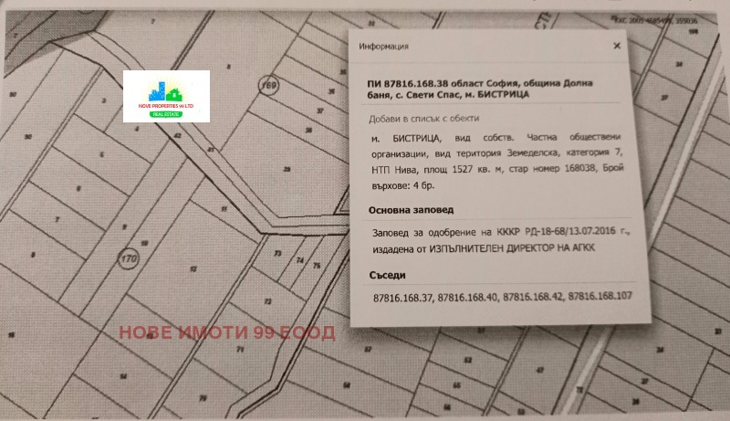 'НОВЕ ИМОТИ 99' ЕООД продава инвестициони имоти в гр. Долна Баня,