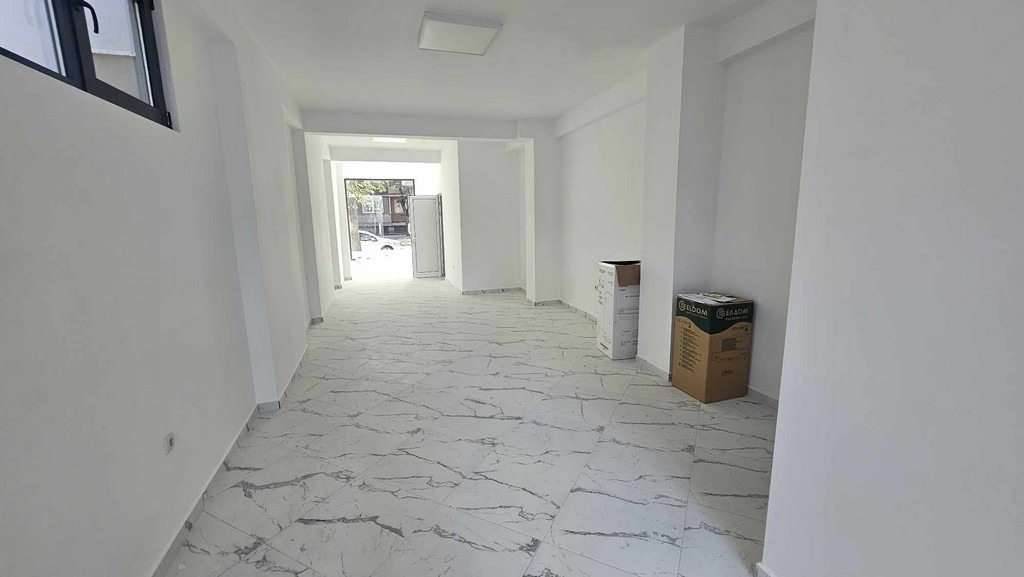 Дава под наем търговско помещение, ново тухлено строителство в завършен вид, с акт 16, в Центъра на град Кърджали, в района на Рилите. Помещението е с площ 60 кв.м. и се състои от основна търговска зала, малък склад и санитерен възел. Към имота има и складово помещение, което е с площ 100 кв.м. и е разположено в приземния етаж на сграда. Магазина е на ниво партер. Имота е в отлично състояние, ремонтирано и готово за експлоатация. Помещението е разположено на оживено и комуникативно място, поради което е подходящо за всякакъв вид дейност.