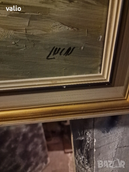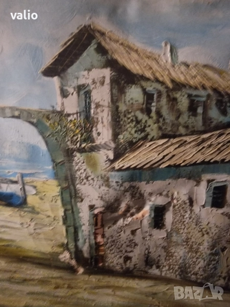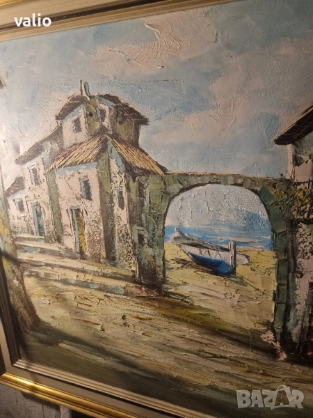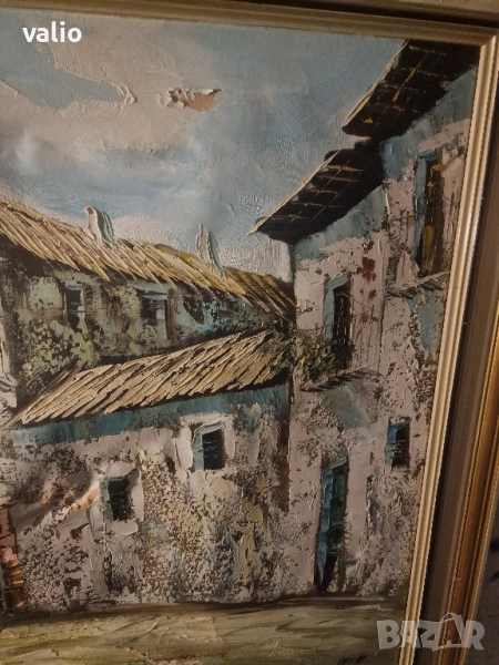 Голяма картина рисувана на платно с маслени бои подписана на 3-4 места боята е паднала на една от снимките се вижда, размери външни 102-72см.
