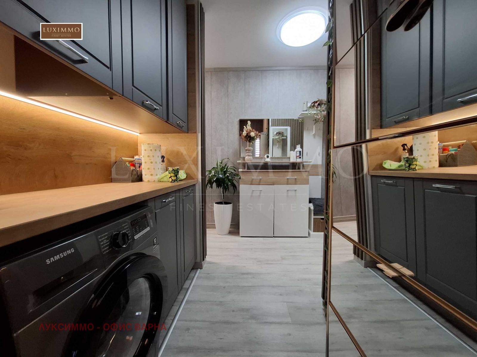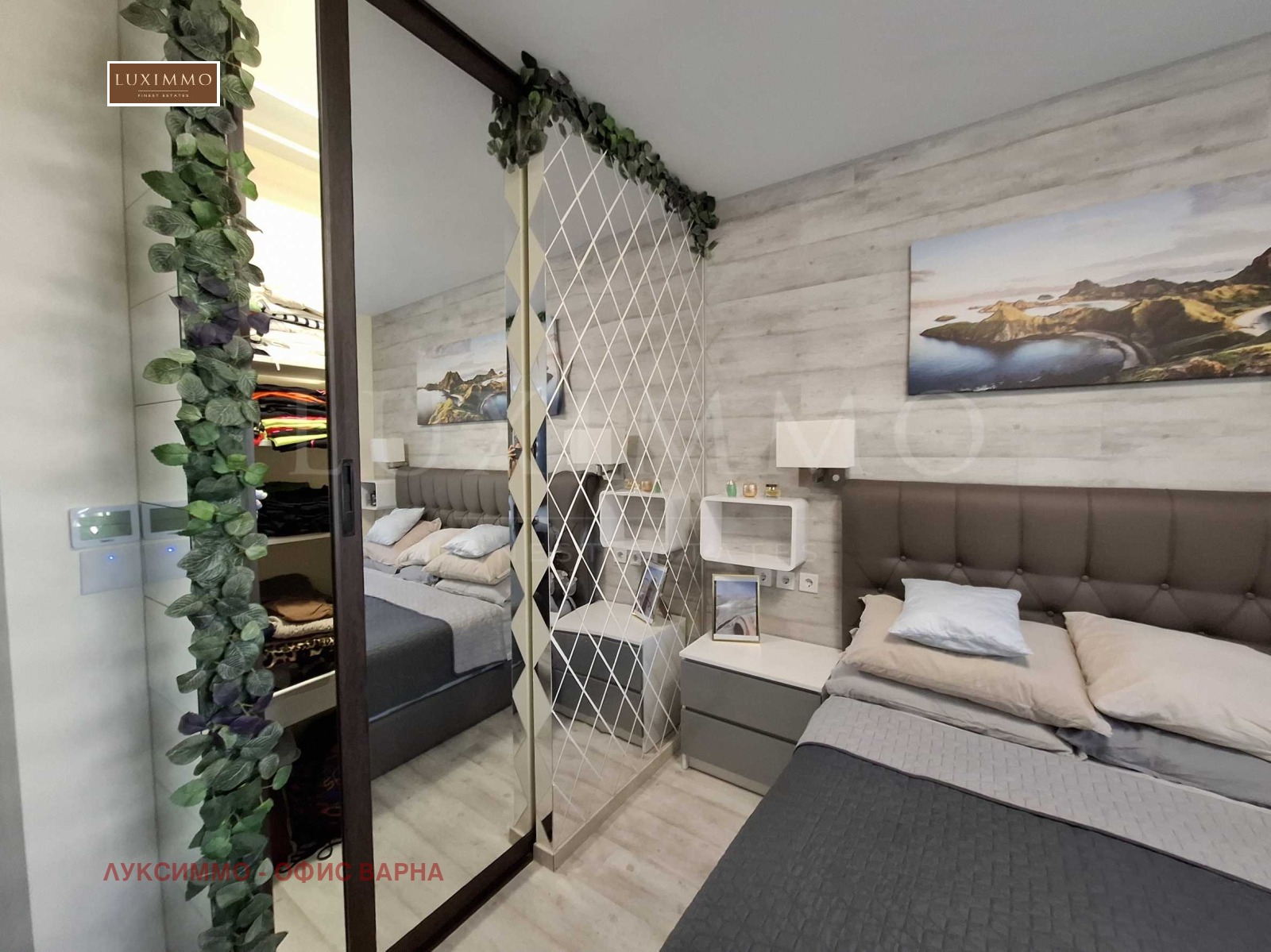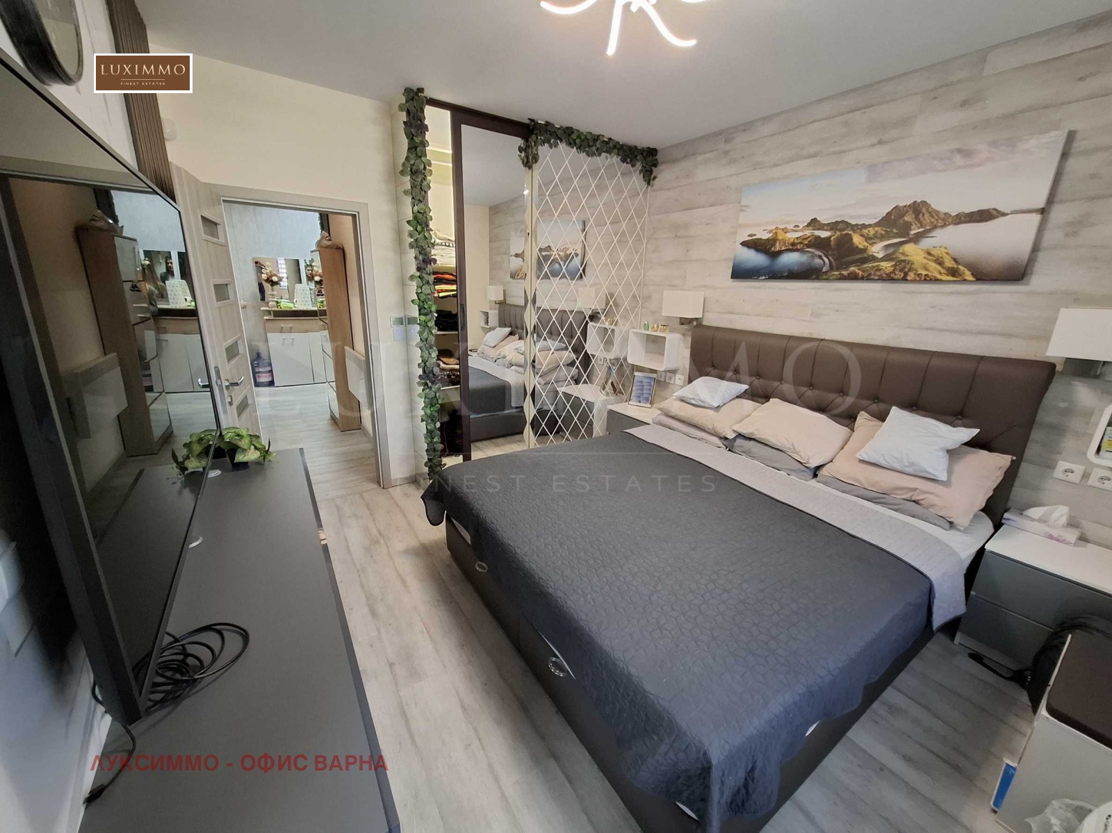 главна спалня с голям гардероб с дизайнерско огледало;