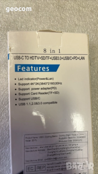8в1 USB Type-C HUB (Нов,4K HDMI,2xType-C,2xUSB v.3.2,SD/MMC/mSD,LAN)