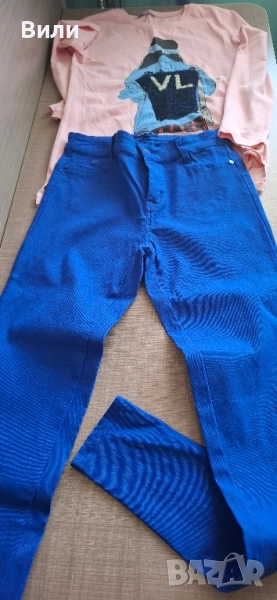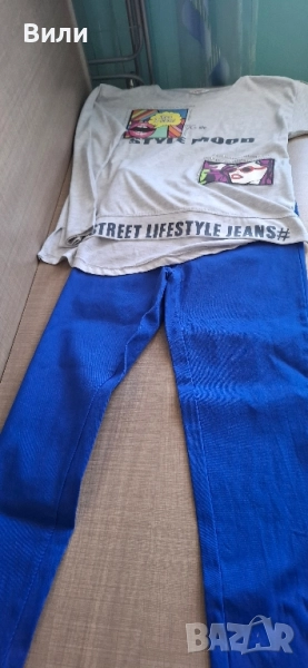 4. СИН - имитиращ дънки, с реални джобчета, размер S / M, отговаря на 164, силно еластичен, нов, без етикет